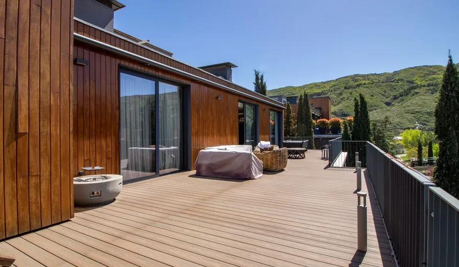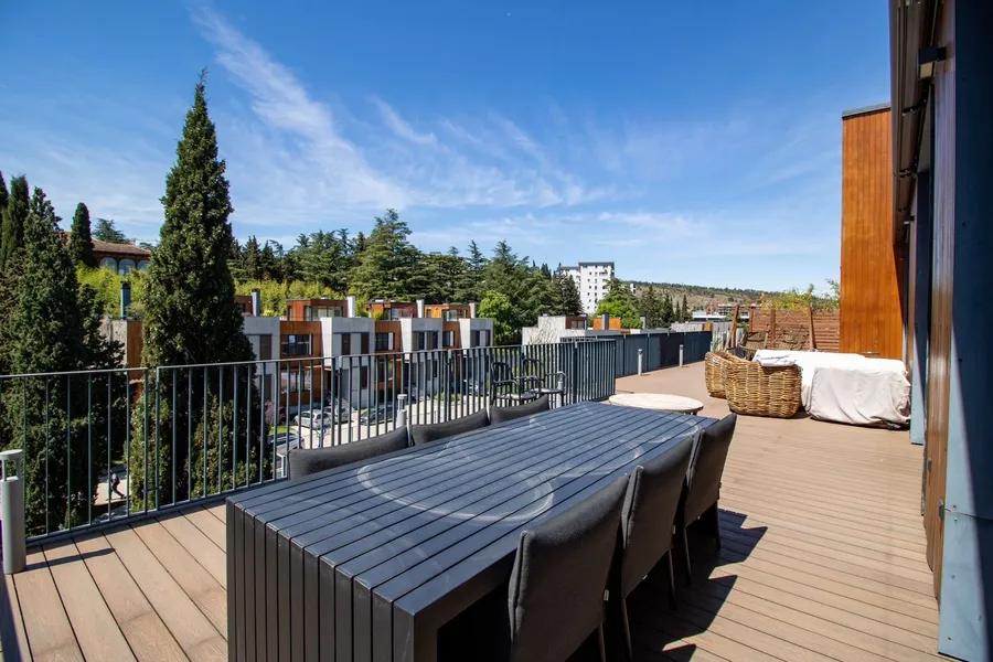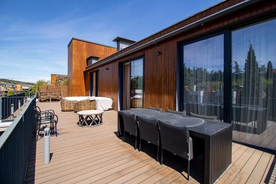 • A spacious private terrace with panoramic views of lush greenery and the surrounding hills